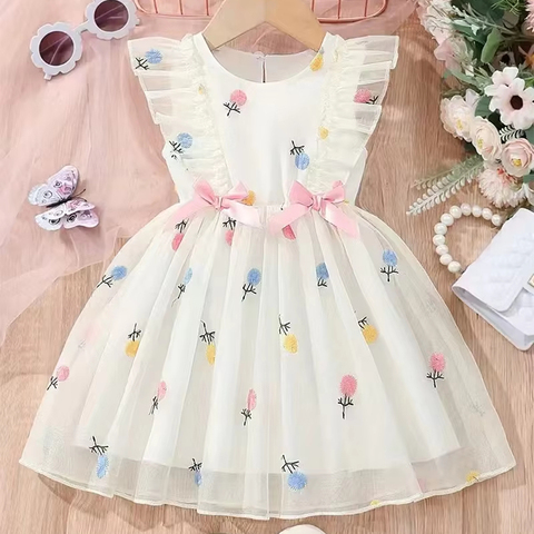Hot Bán Bé Cô Gái Quần Áo Thêu Ngọt Ngào Hoa Công Chúa Ăn Mặc Toddler Cô Gái Mặc Hàng Ngày