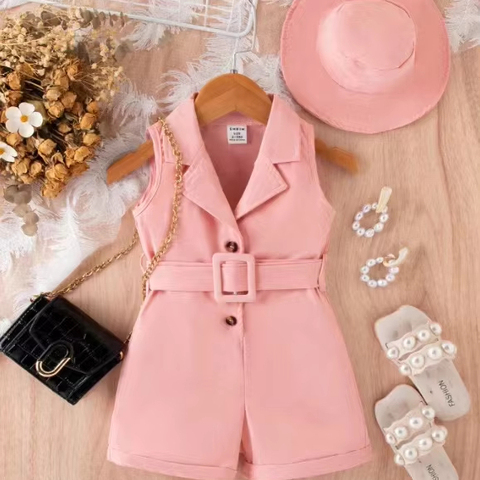 Hot bán bé gái không tay Romper rắn nút quần short với hat Jumpsuit cho trẻ sơ sinh cô gái giản dị tổng thể mát mẻ phù hợp với thanh lịch